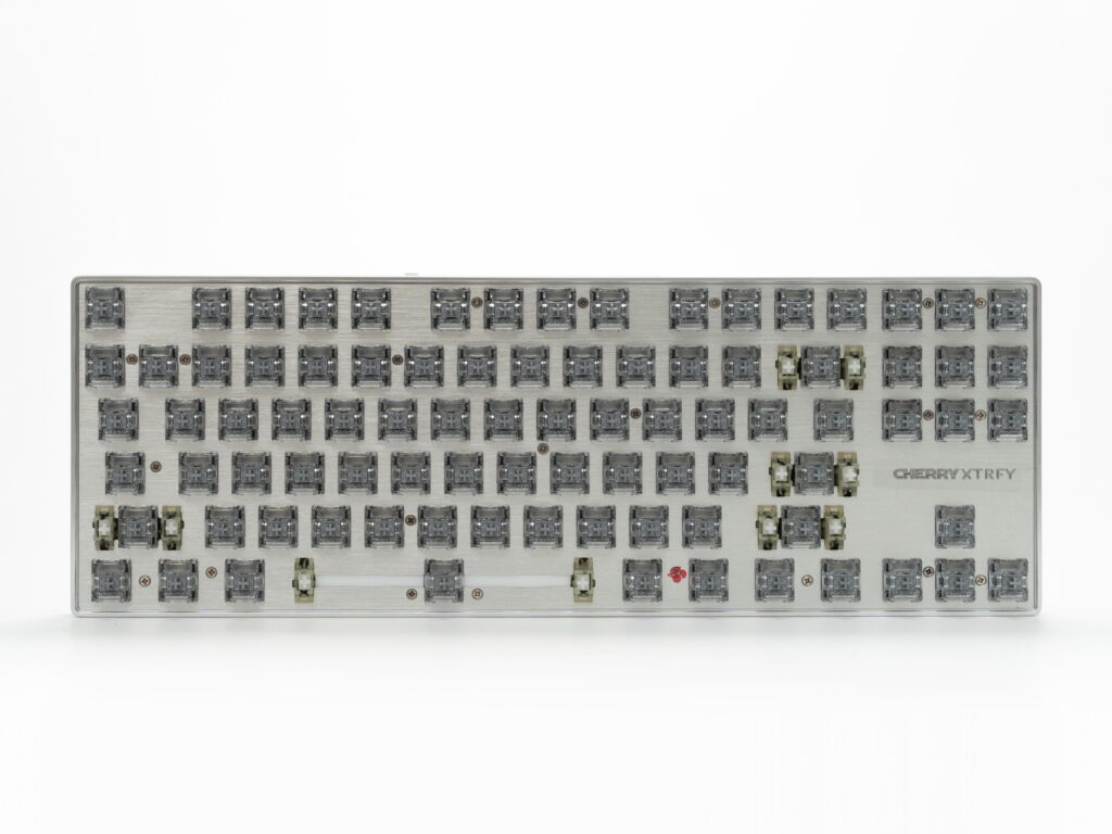 The Cherry XTRFY MX8.2 PRO is a flagship gaming keyboard equipped with Cherry’s latest technology. Its key specifications include a compact 87-key tenkeyless (TKL) layout. Weighing approximately 950g, it has a substantial feel that prevents the keyboard from sliding during intense gaming sessions.