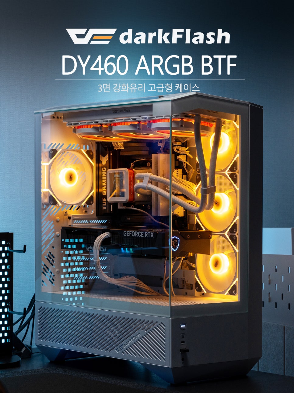 The Darkflash DY460 ARGB BTF, befitting Darkflash’s premium lineup, features an impressive design that considers not only aesthetics but also practicality and performance. The approximately 330-degree panoramic view provided by the three-sided tempered glass maximizes the effect of RGB tuning, allowing you to admire the beauty of the internal components from any angle.