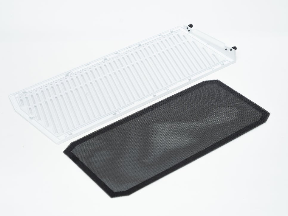 The top panel is equipped with a detachable dust filter cover. Its two-stage structure, consisting of an internal dust filter and diagonal vents, prevents dust from entering without obstructing airflow. The bottom also features a magnetic dust filter, making maintenance very convenient.