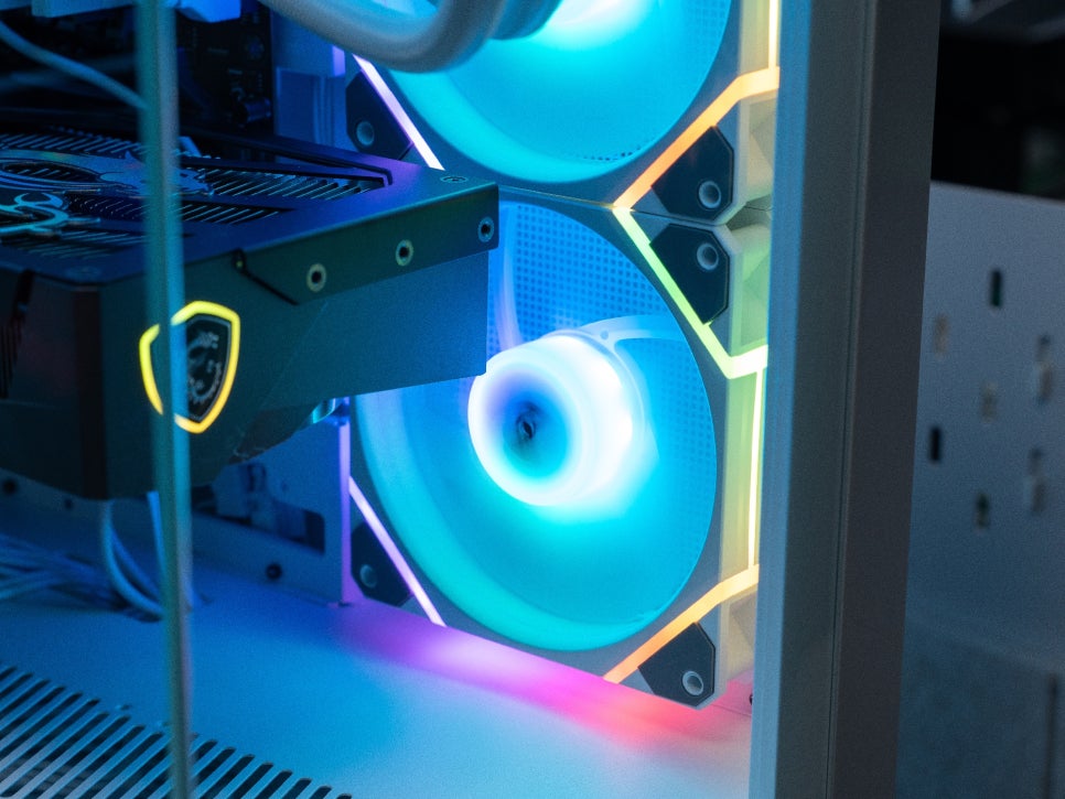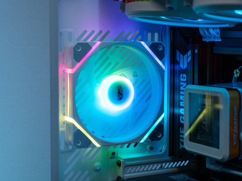 Upon activating the RGB effects, the cooling fans exhibited excellent LED illumination. The edge lighting effect, combined with the ideal brightness, conveys a premium feel. The soft diffusion of light along the fan’s rim appeared very sophisticated.