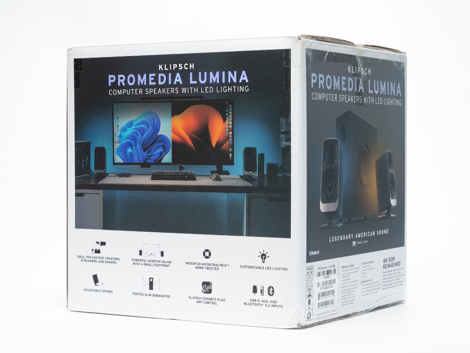From now on, we will take a closer look at the Klipsch ProMedia Lumina, a PC speaker that combines Klipsch’s signature Tractrix Horn sound technology with RGB lighting, offering not only premium sound quality but also completing your desk setup with its stylish design.