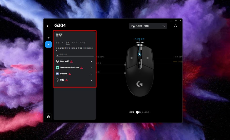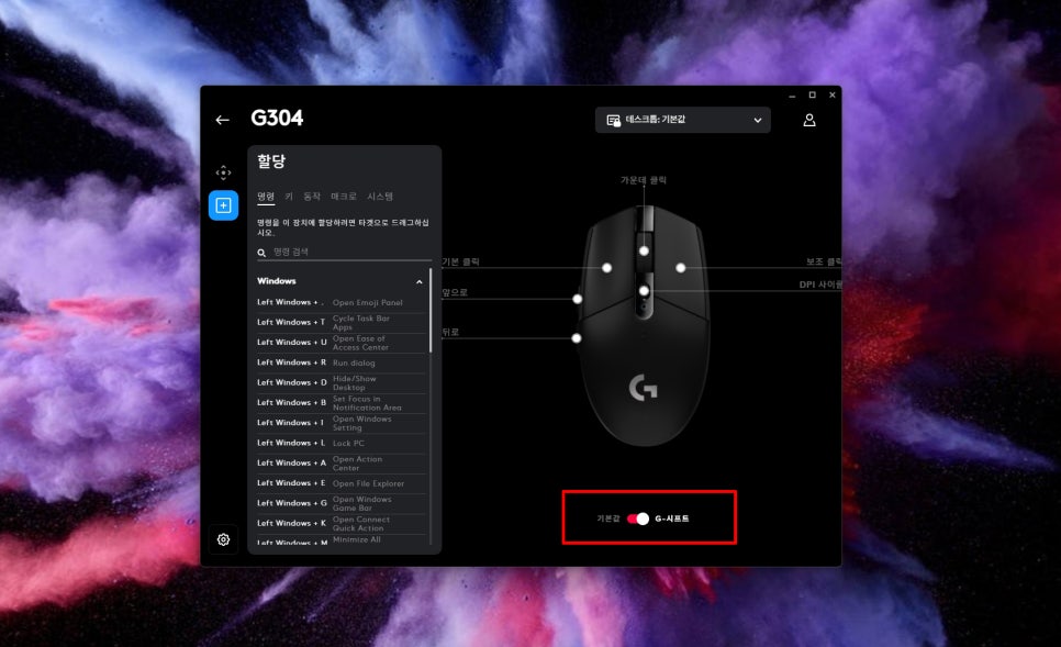 In the Assignments menu, you can assign desired functions to each of the G304’s six buttons. In addition to basic click functions, you can assign a variety of functions such as keyboard key combinations, launching specific programs, or executing macros.