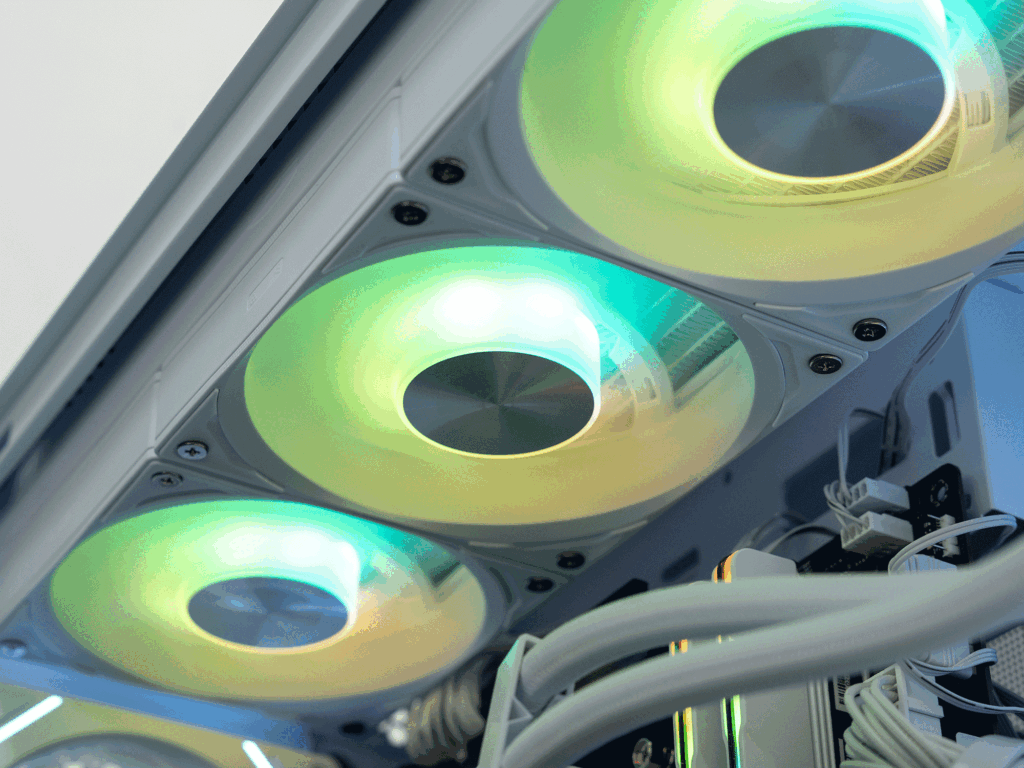 All three 120mm cooling fans feature ARGB, allowing for vibrant RGB lighting setups. Connecting to the motherboard’s ARGB header enables synchronization with the motherboard manufacturer’s RGB software for cohesive system lighting effects.