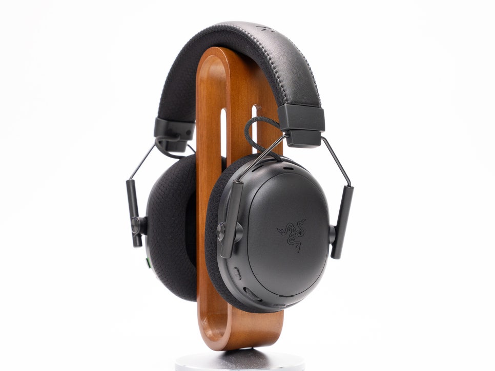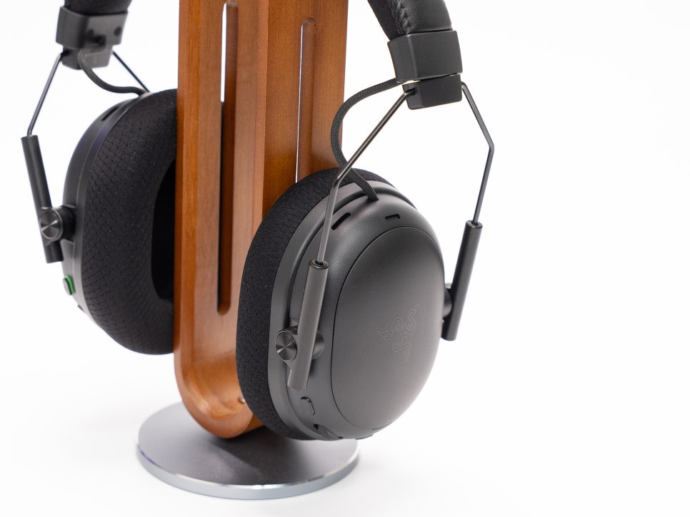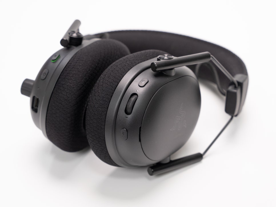 The Razer BlackShark V3 Pro immediately catches the eye with its unique appearance, which is synonymous with the BlackShark series. Its design evokes an aviation headset worn by military helicopter pilots, and the silhouette created by the combination of its wire-frame yokes and oval earcups remains impressive. Overall, the matte black color scheme, complemented by a subtle Razer logo, exudes a premium yet understated vibe.