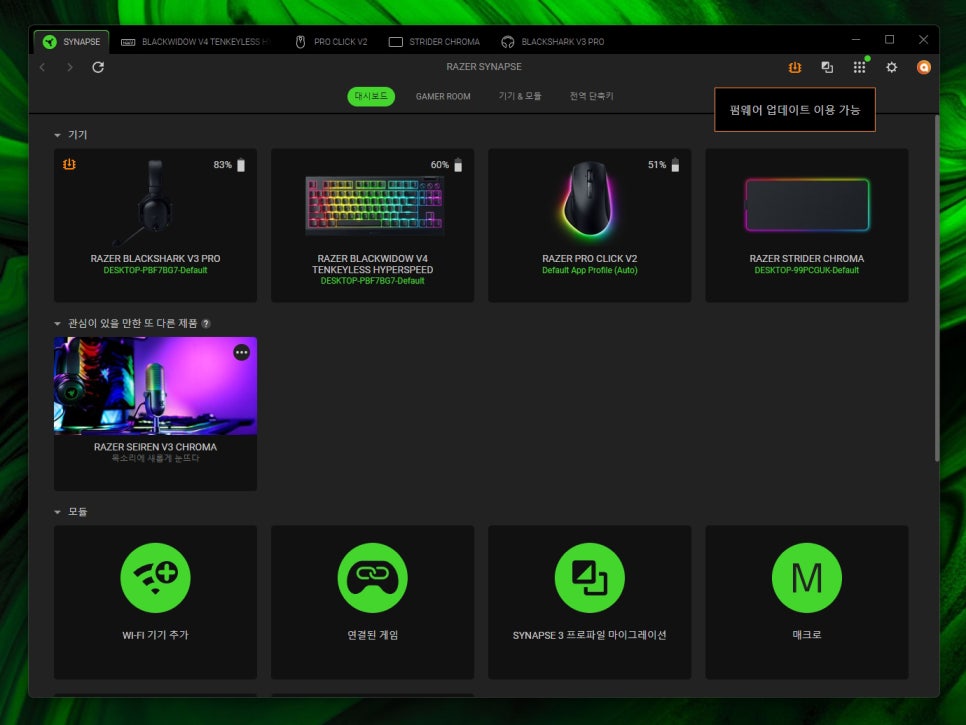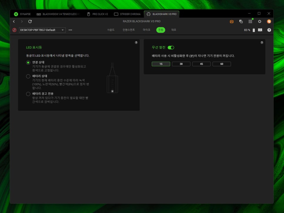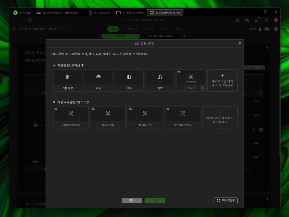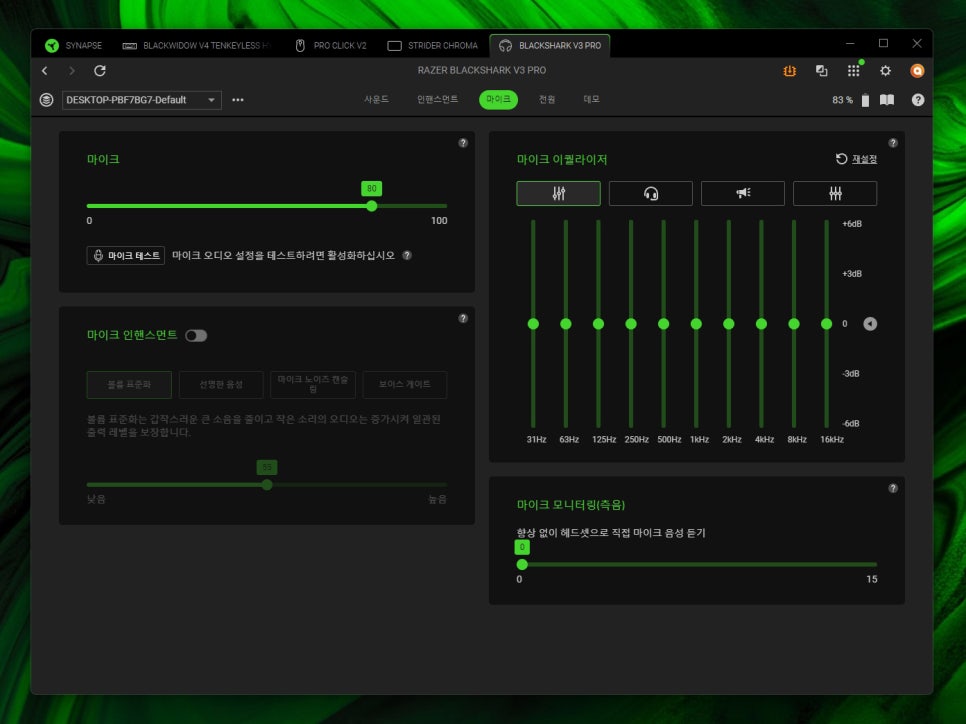 With the Razer BlackShark V3 Pro, you can adjust various detailed settings using the Razer Synapse 4 software in a PC environment. Synapse 4 is Razer’s integrated device management software, allowing for detailed customization of headsets, just like mice or keyboards.