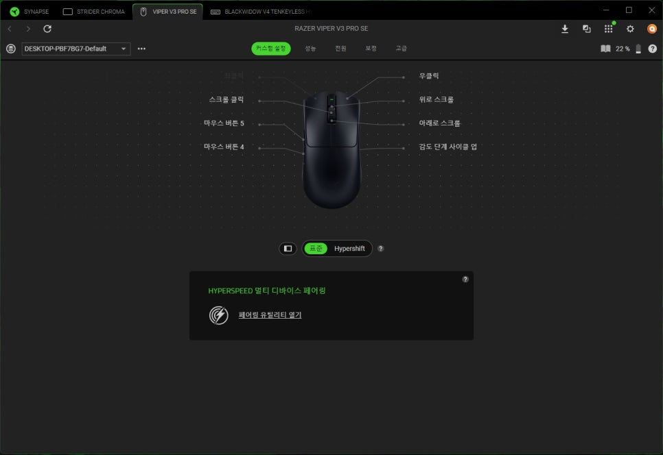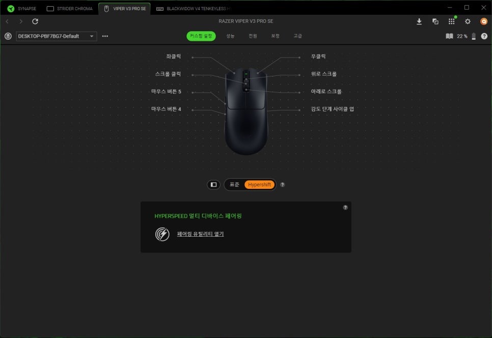 In the button mapping menu, you can freely assign desired functions to a total of 8 buttons. Notably, by utilizing the HyperShift function, you can map two functions to a single button, allowing for more efficient use. HyperShift works by changing the functions of other buttons while a specific button is being held down, much like the Shift key on a keyboard.