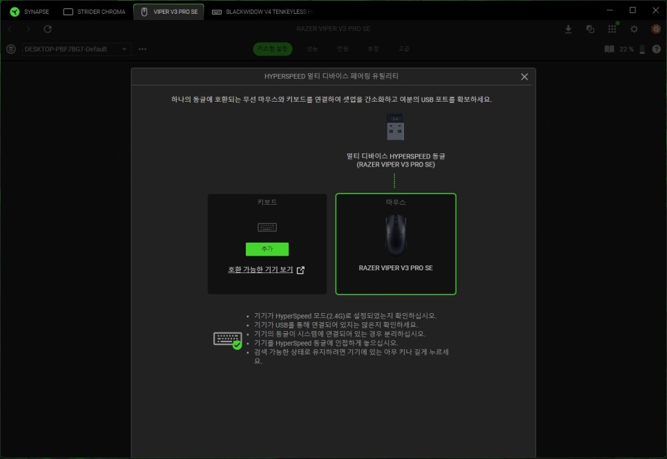 The HyperSpeed Multi-device pairing feature is also available, allowing you to connect multiple Razer devices with a single dongle. You can pair up to two devices, making it possible to use a mouse and a keyboard with just one dongle.