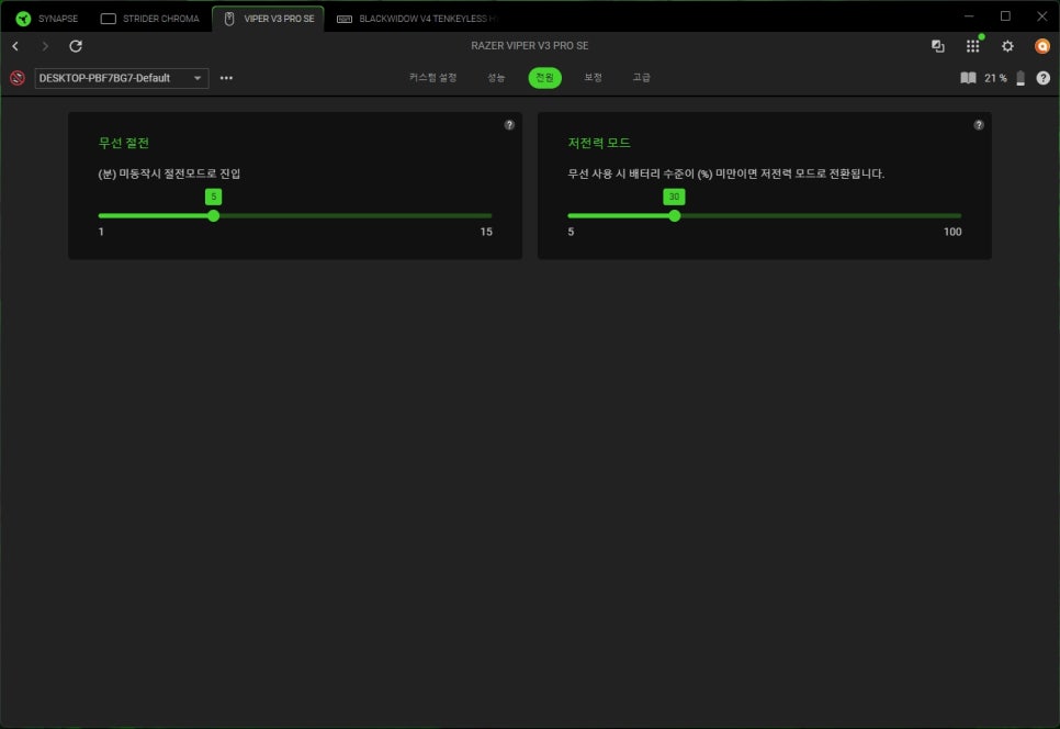 Among these, RAZER Synapse, which allows for detailed configuration of Razer products, offers various functions such as detailed product settings, firmware installation, and profile management for Razer products.
