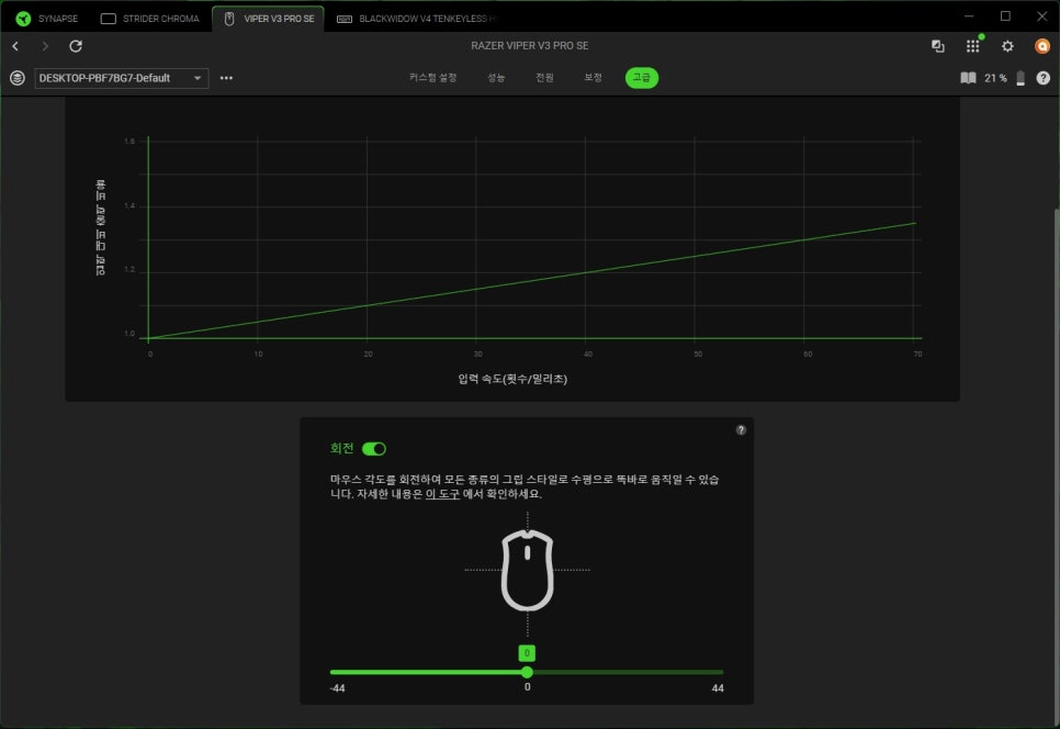 The “Rotation Function” is a calibration feature for users who hold or use the mouse at an angle, allowing even users with a habit of holding the mouse at an angle to move the cursor accurately vertically/ horizontally.