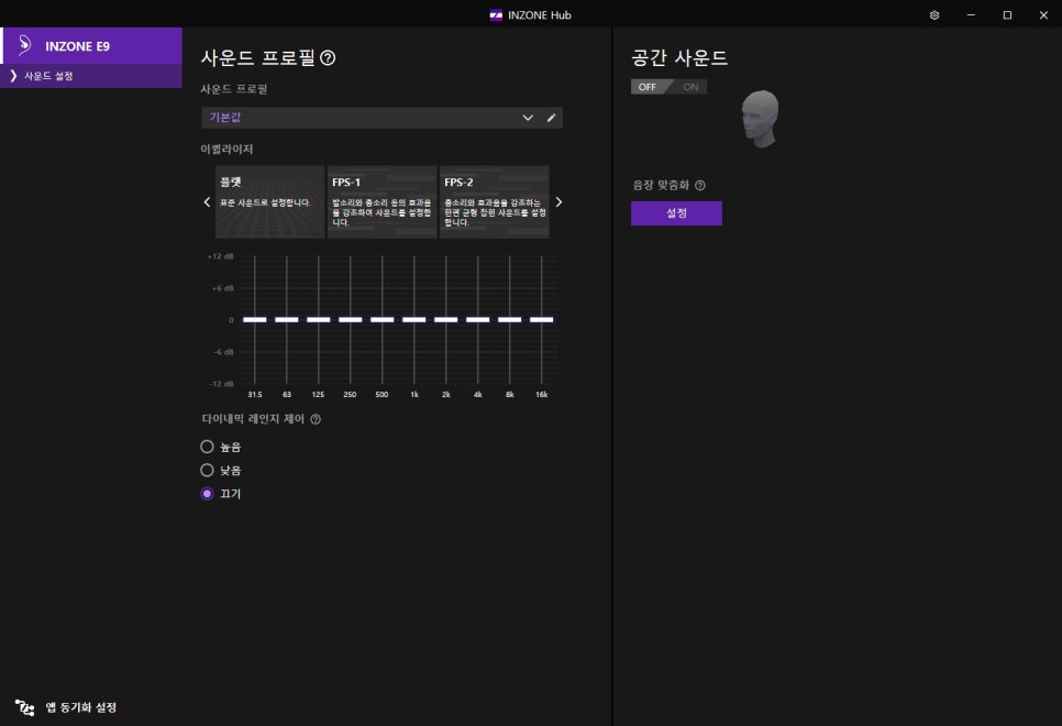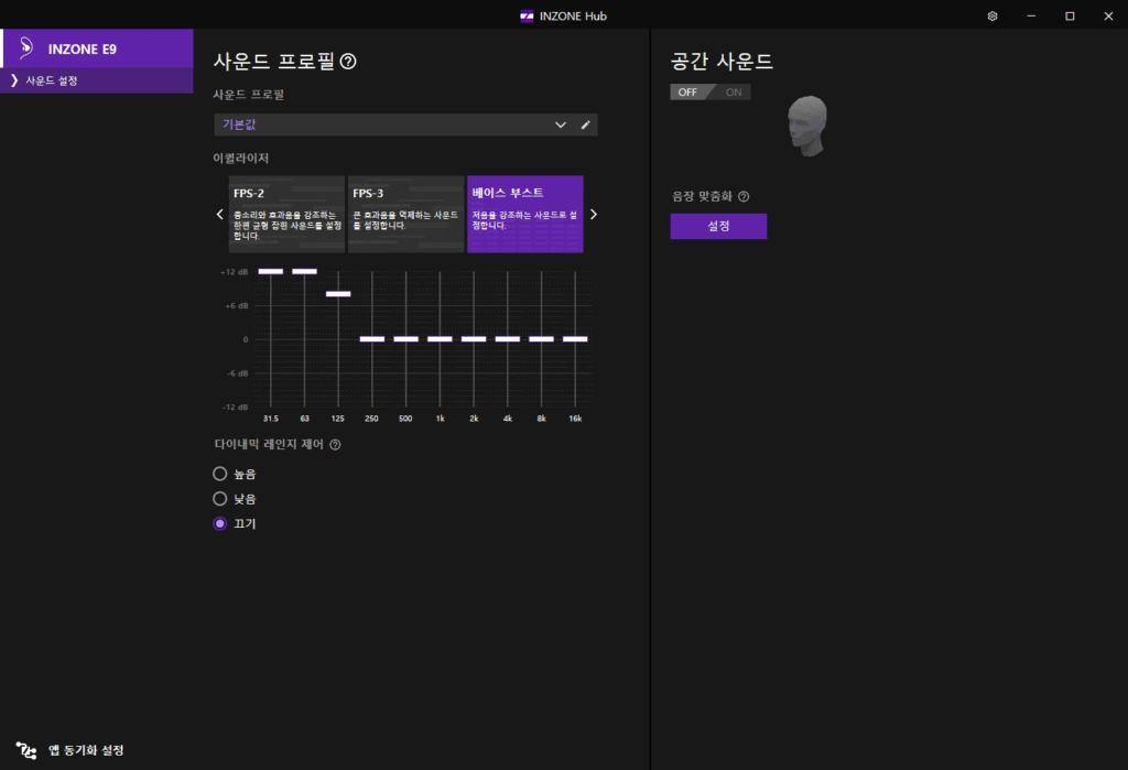 The three presets – FPS-1, FPS-2, and FPS-3 – are EQ settings developed in collaboration with Fnatic players. Each preset features different tuning, such as emphasizing gunshots and footsteps or adjusting explosion sounds, allowing you to choose one that suits your playstyle.